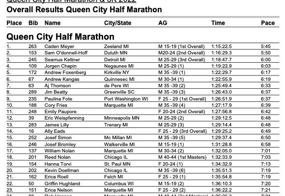 Queen City Half Marathon Results